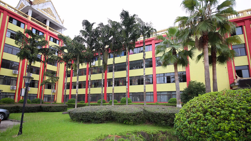 学校修建以金色调为主,,,,,,鎏金装潢遮掩,,,,,,艳丽多彩,,,,,,泛起着粗犷而又漂亮的色彩美。。。。。。。。绿化设计既有轻松休闲的意见意义,,,,,,又有浓郁的热带风情,,,,,,既有古板形式的继续,,,,,,又有鲜明的时代特征,,,,,,内容富厚、形式多样。。。。。。。。